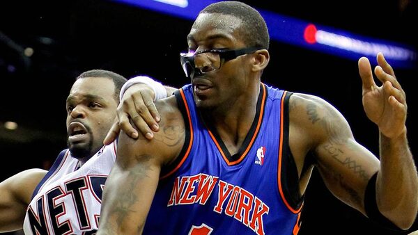 New York Knicks power forward Amare Stoudemire is fouled by New Jersey Nets power forward Shelden Williams during the second half at the Prudential Center.Jim O'Connor-US PRESSWIRE