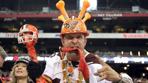 A fan of the Cleveland Browns cheers during the NFL game against the Arizona Cardinals at the University of Phoenix Stadium.Christian Petersen