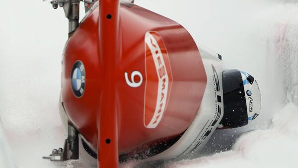Driver Gregor Baumann of team Switzerland 1 crashes in the track together with his pushers Thomas Klettner, Alex Baumann and Patrick Bloechliger during the four-man bobsleigh World Cup competition in the western German town of Winterberg.WOLFGANG RATTAY/Reuters