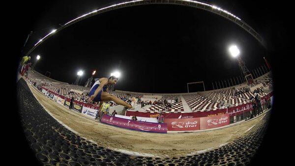 Saleh Al-Haddad of Kuwait competes during the men's long jump final at the Arab Games in Doha.SUHAIB SALEM/Reuters