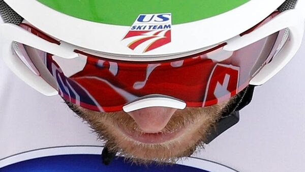 Bode Miller of the U.S looks down after crossing the finish line to get the second place in the men's World Cup Super-G Alpine skiing race in Val Gardena, northern Italy.MAX ROSSI/Reuters