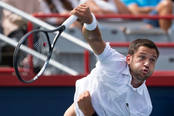 Alexis Galarneau serves during a National Bank Open match against Rinky Hijikata, in Montreal, on Aug. 6.Ryan Remiorz/The Canadian Press