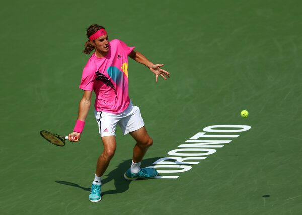 Stefanos Tsitsipas of Greece plays a shot against Kevin Anderson of South Africa during a semi final match on Day 6 of the Rogers Cup at Aviva Centre on August 11, 2018 in Toronto, Canada.Vaughn Ridley/Getty Images