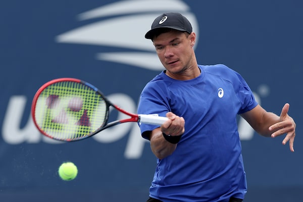 Kamil Majchrzak returns a shot against Karen Khachanov at the U.S. Open in New York on Aug. 28.Sarah Stier/Getty Images