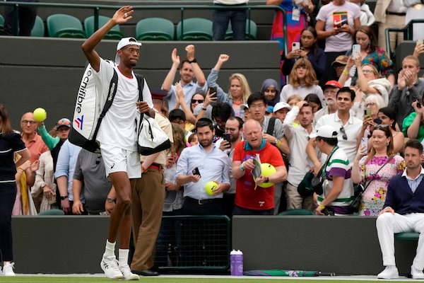Christopher Eubanks of the U.S. waves to the crowd after losing to Russia's Daniil Medvedev in their men's singles match on day ten of the Wimbledon tennis championships in London, on July 12.Alastair Grant/The Associated Press