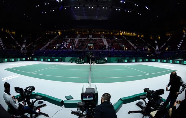 Stands sit empty prior to a tennis match between France and Serbia at the Davis Cup Madrid Finals 2019 on Nov. 21, 2019.OSCAR DEL POZO/AFP/Getty Images