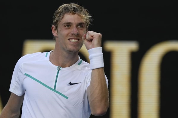 Denis Shapovalov of Canada reacts after defeating Reilly Opelka of the U.S. in their third round match at the Australian Open tennis championships in Melbourne, Australia, Friday, Jan. 21, 2022.The Associated Press