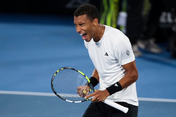 Felix Auger-Aliassime of Canada reacts after defeating Sebastian Korda of the United States in the men's final of the Adelaide International in Australia on Jan. 11.Matt Turner/The Associated Press