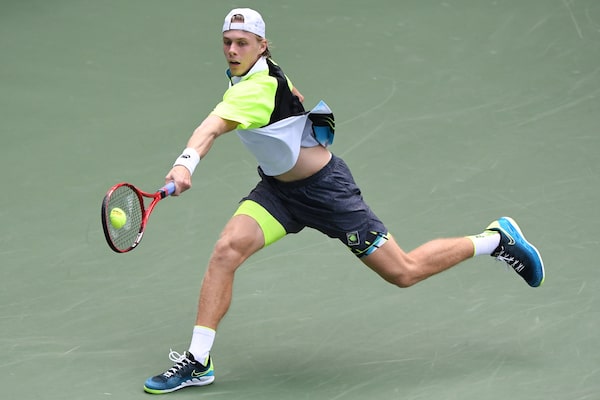 Denis Shapovalov reaches for a backhand against Sebastian Korda on day one of the 2020 U.S. Open on Aug. 31, 2020, in Flushing Meadows, N.Y.Danielle Parhizkaran/USA TODAY Sports via Reuters