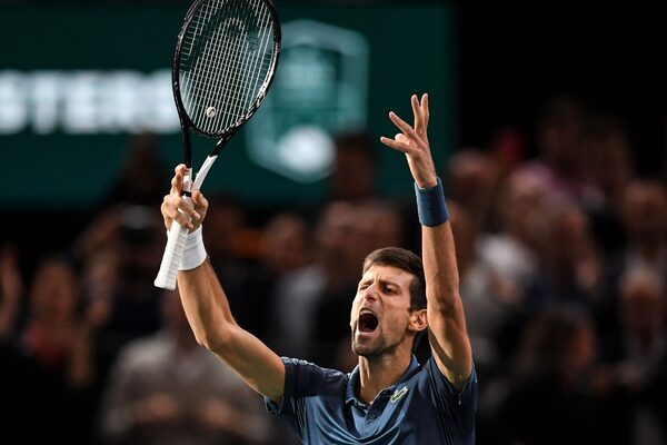 Serbia's Novak Djokovic celebrates after winning against Switzerland's Roger Federer at the end of their men's singles semi-final tennis match on day six of the ATP World Tour MastersCHRISTOPHE ARCHAMBAULT/AFP/Getty Images