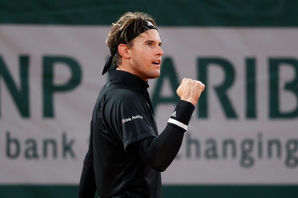Dominic Thiem celebrates a point against Casper Ruud at the French Open in Paris on Oct. 2, 2020.Clive Brunskill/Getty Images