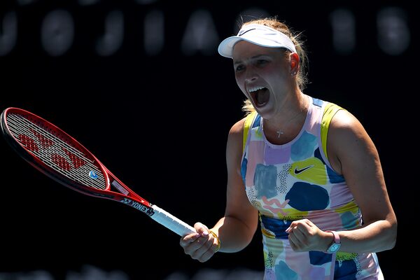 Croatia's Donna Vekic celebrates winning the match against Russia's Maria Sharapova in the Australian Open in Melbourne on Tuesday.HANNAH MCKAY/Reuters