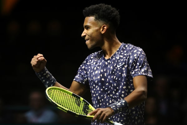 Felix Auger-Aliassime celebrates his victory against Jan-Lennard Struff at the ABN AMRO World Tennis Tournament on Feb. 11, 2020 in Rotterdam, Netherlands.Dean Mouhtaropoulos/Getty Images
