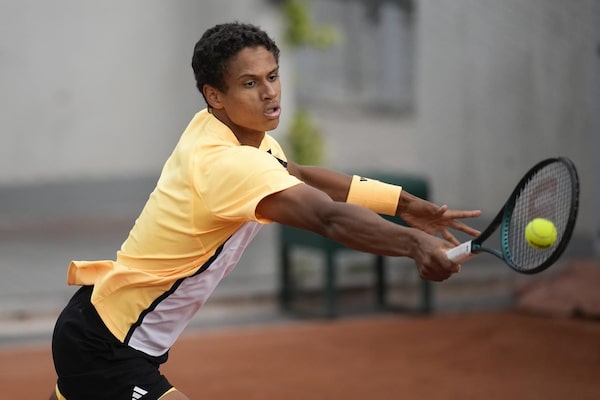 Canada's Gabriel Diallo plays a shot against Japan's Kei Nishikori during their first round match of the French Open tennis tournament at the Roland Garros stadium in Paris, on May 26.Christophe Ena/The Associated Press