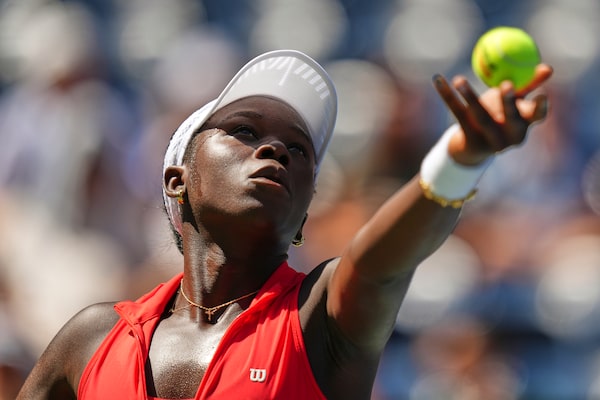 Victoria Mboko of Canada serves to Barbora Krejcikova of the Czech Republic during the first round of the U.S. Open on Monday, Aug. 25, 2025, in New York.Kirsty Wigglesworth/The Associated Press
