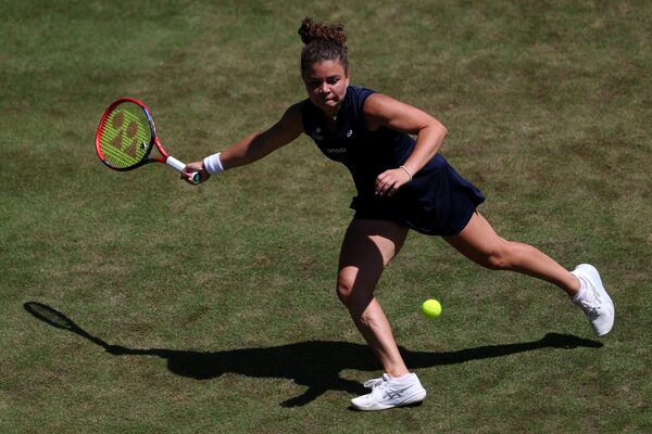 Jasmine Paolini of Italy returns a forehand as she plays against Leylah Fernandez of Canada during the Round of 16 on Day Three of the Bad Homburg Open, June 24.Dean Mouhtaropoulos/Getty Images