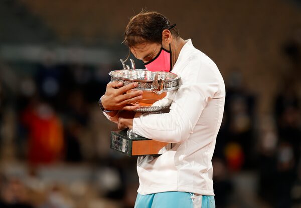 Spain’s Rafael Nadal with the trophy after winning the French Open final against Serbia’s Novak Djokovic in Paris, France on Sunday, Oct. 11, 2020.CHRISTIAN HARTMANN/Reuters