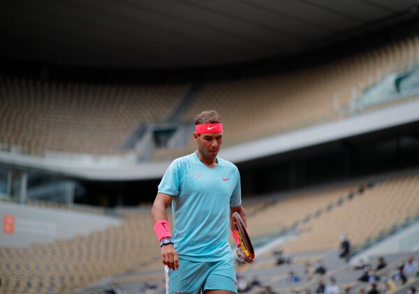 Rafael Nadal plays on a nearly empty centre court at the French Open in Paris on Sept. 30, 2020.Christophe Ena/The Associated Press