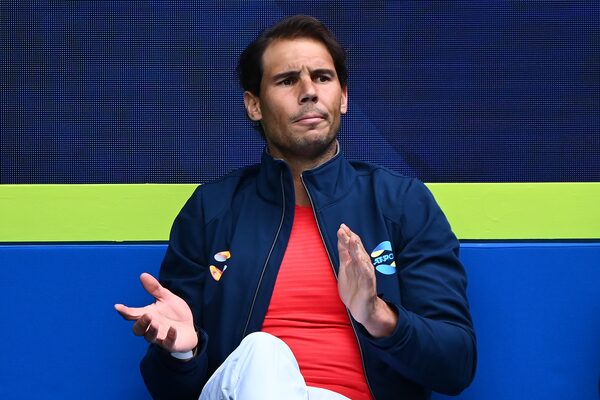 Rafael Nadal watches a match between Pablo Carreno Busta and John Millman during the 2021 ATP Cup at Rod Laver Arena on Feb. 2, 2021, in Melbourne.Quinn Rooney/Getty Images