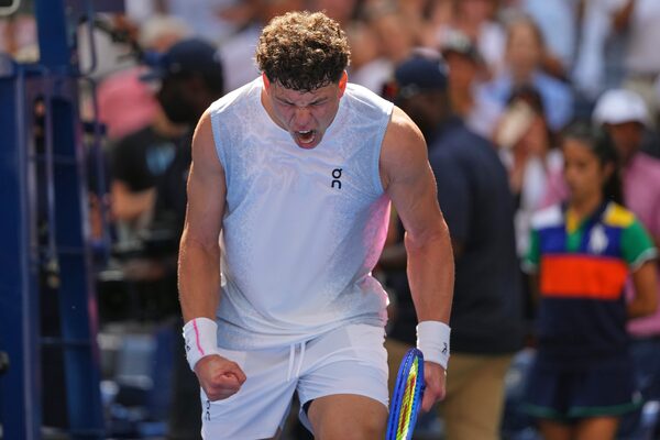 Ben Shelton reacts after defeating Ignacio Buse during the first round of the U.S. Open on Sunday.Kirsty Wigglesworth/The Associated Press