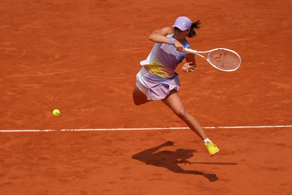 Poland's Iga Swiatek hits a return against Ukraine's Elina Svitolina during their quarter-final match.Aurelien Morissard/The Associated Press