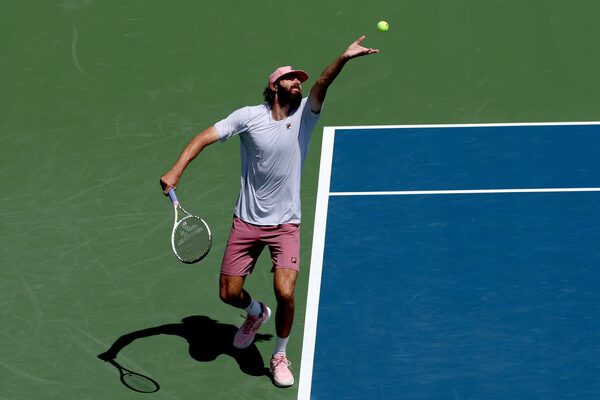 Reilly Opelka serves to Sebastian Ofner during the National Bank Open Presented by Rogers at Sobeys Stadium during their match on Sunday in Toronto.Matthew Stockman/Getty Images