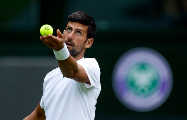 Serbia's Novak Djokovic practises on Center Court ahead of the 2022 Wimbledon Championship at the All England Lawn Tennis and Croquet Club, in London, Thursday, June 23, 2022.Steven Paston/The Associated Press