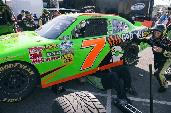 Mechanics work on the car of Danica Patrick during the NAPA Auto Parts 200 NASCAR Nationwide race at the Circuit Gilles Villeneuve in Montreal on Saturday, August 18, 2012. Patrick finished in 27th place.Ryan Remiorz/The Canadian Press