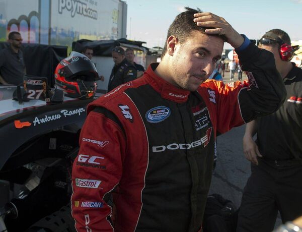 Andrew Ranger gets out of his car after mechanical failure forced him to withdraw during the NAPA Auto Parts 200 NASCAR Nationwide race at the Circuit Gilles Villeneuve in Montreal on Saturday, August 18, 2012.Ryan Remiorz/The Canadian Press