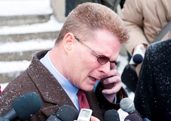 Saskatchewan Roughriders general manager Eric Tillman is emotional as he speaks to reporters after receiving an absolute discharge in his sexual assault case at the Provincial Courthouse on Tuesday, Jan. 5, 2010 in Regina, Sask.TROY FLEECE