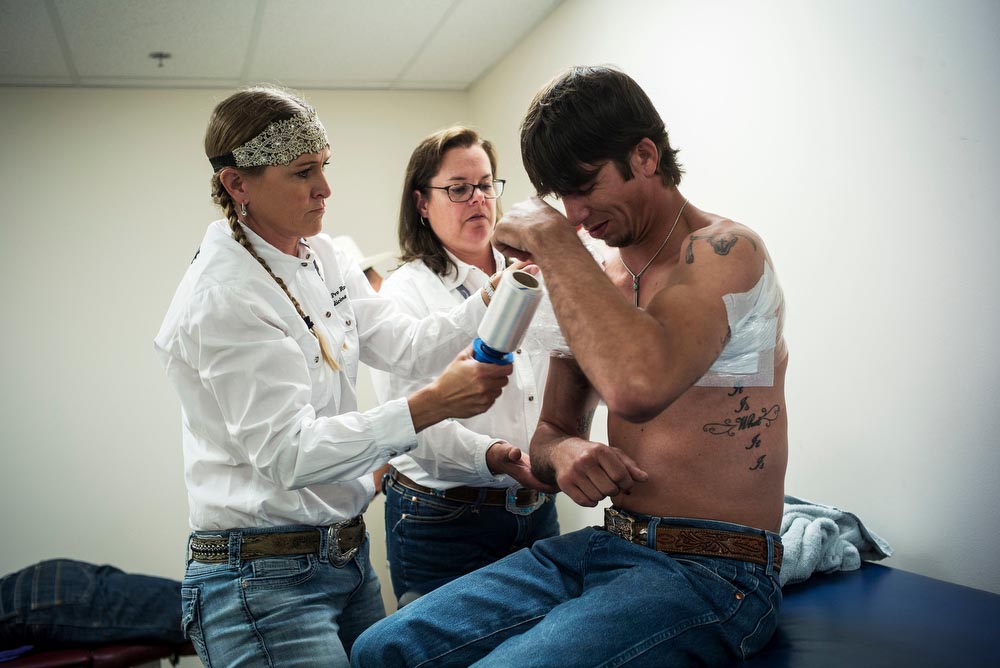 Cowboys have a reputation as tough athletes. Bull riders raise the bar. They separate shoulders, break ankles, fracture arms and tear muscles off the bone. They compete with jarring injuries, jamming broken feet into cowboy boots, bleeding openly. In a rodeo dressing room, ice packs and slings are as common as chaps and spurs.