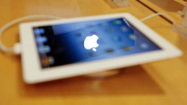 An Apple logo is reflected in the screen of a new Apple iPad at an electronics store in Mumbai in this April 27, 2012 file photograph. Sharp's iPad screen production line at its Kameyama plant in central Japan has fallen to the minimal level to keep the line running this month after a gradual slowdown began at the end of 2012 as Apple manages its inventory, the industry sources with knowledge of Sharp's production plans told Reuters.VIVEK PRAKASH/Reuters