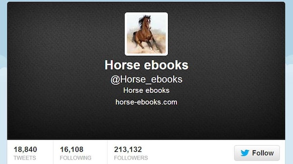 Social media exploded on Tuesday when it turned out that a Twitter account called @horse_ebooks – which seemed to be an artificial program that spit out wonderfully arcane, random bits of text in recent years – was in fact fake, and part of an ongoing performance art piece. Only adding to the absurdity is that the news came via a blog post from novelist Susan Orlean on the New Yorker website.