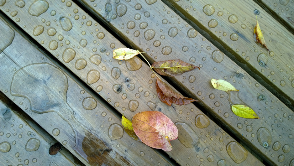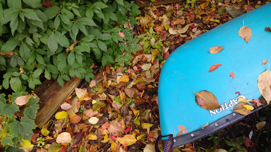 A wet morning helps bring out the colours of various elements in this photo. The camera was able to retain the natural colour of the green leaves while still being able to show good tonal capture of the fallen leaves on and around the canoe. (Shot at 125 ISO.)