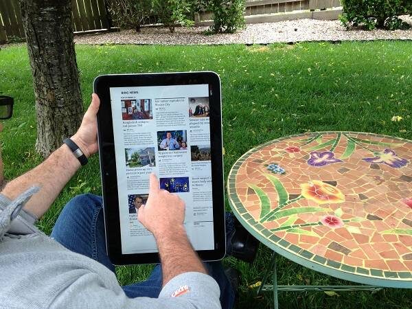 What I thought was a joke – reading with something this big on your lap – is actually touted as a feature in the company’s internal blog (http://bit.ly/14Tp4Kj). “It’s certainly more convenient to tote around than a desktop,” writes GizmoGladstone. Hey Gizmo, just so you know, the Rove does not “solve the problem” of dragging your desktop outside. No one was doing that.