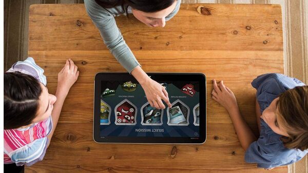 The same presser burbles with excitement that “Using advanced multitouch technology, multiple users can interact with games and more at the same time. Multiplayer games such as Electronic Arts’ Monopoly™, Fingertapps™ JigsWar Puzzle, Fingertapps Musical Instruments, and nsquared makewords are an ease to play when the PC is laid flat.” OK. Interesting. But these are all Windows 8 games. Who are the really hot mobile developers making Windows games?