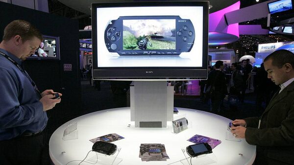 Al De Leon, right, and unidentified man play Sony PSP games during the first day the Consumer Electronics Show in Las Vegas on Monday, Jan. 8, 2007.JAE C. HONG/The Associated Press