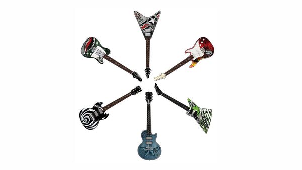 View images of Paper Jamz line of instruments, including guitars, drums and amps