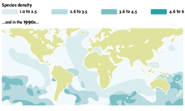 Their work, to be presented at a conference in Vancouver this week, offers an unprecedented global overview of the once astonishing abundance of fish and marine mammals, 10 times more than can be found beneath the waves today.