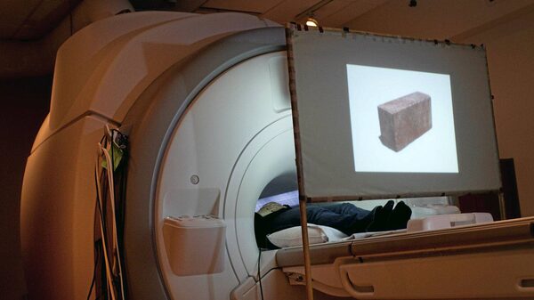 An image of a brick is projected on a screen as researcher Oshin Vartanian uses an MRI to study the human brain.Moe Doiron/The Globe and Mail
