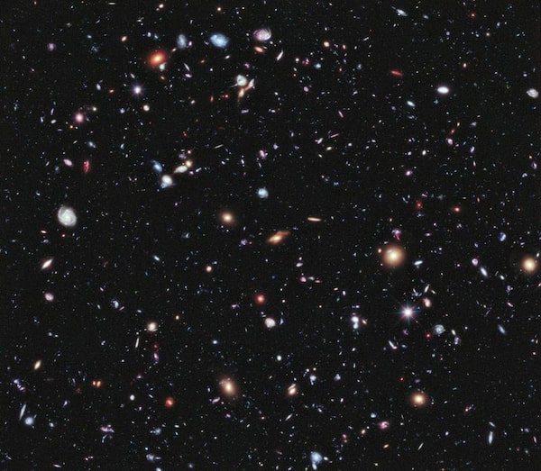 More than 2,000 images of the same field, taken by Hubble's Advanced Camera for Surveys and its near-infrared Wide Field Camera 3, were combined to form the XDF.