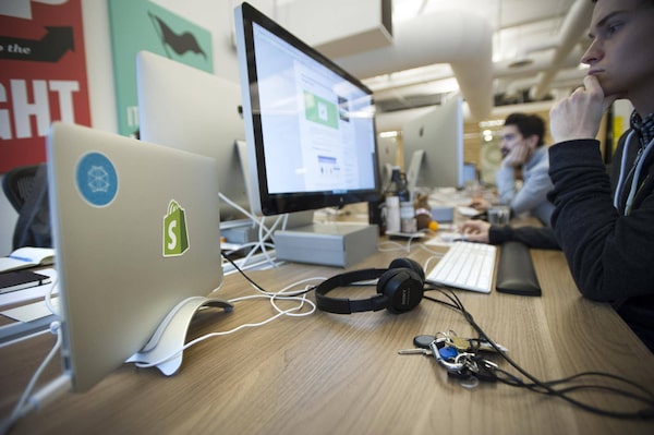 Workers sit at their desks in the Shopify Inc. offices in Toronto, Ontario, Canada, on Wednesday, Nov. 11, 2015.Kevin Van Paassen/Bloomberg