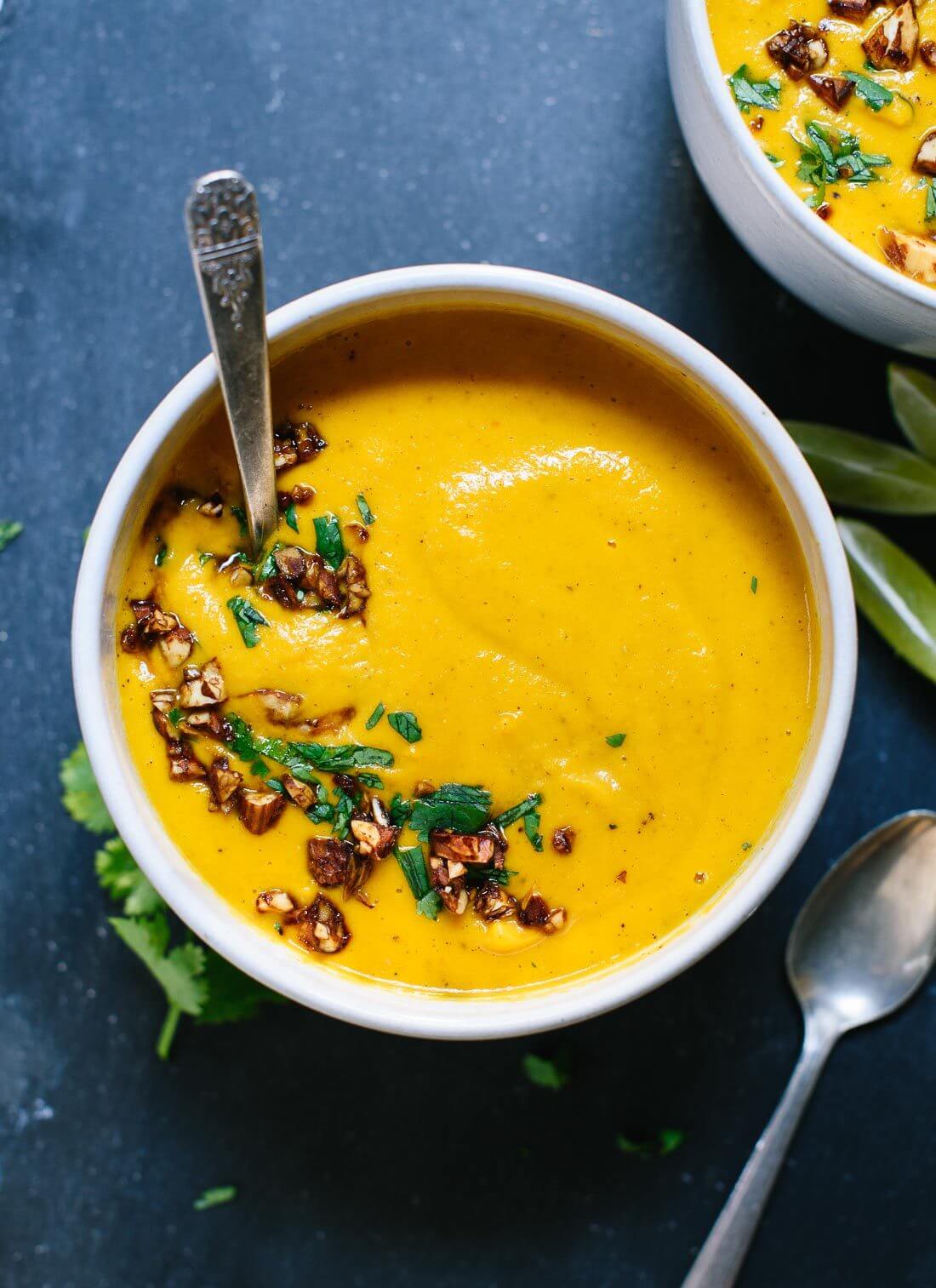 Make it nut free: I haven’t tried making this soup nut-free, but here are some thoughts. First, you’ll have to omit the almond topping. You could also just omit the almond butter, but the soup will be lighter. If you like sunflower butter, you could try that in place of the almond butter. I’ve also had good luck blending soup with ½ cup rinsed and drained cooked white beans (Great Northern or chickpeas) if you want to give that a shot—I haven’t tasted beans in the finished soup.