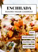 This roasted veggie enchilada casserole recipe is a hearty, vegetable-packed dinner loaded with fresh Mexican flavors! It’s a great gluten-free main dish. Recipe yields 6 to 8 servings.