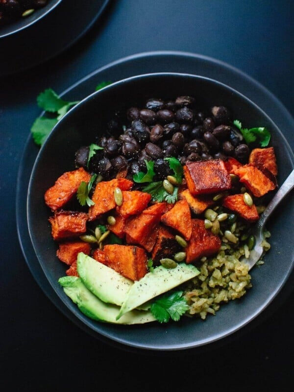 Spicy Sweet Potato and Green Rice Burrito Bowls