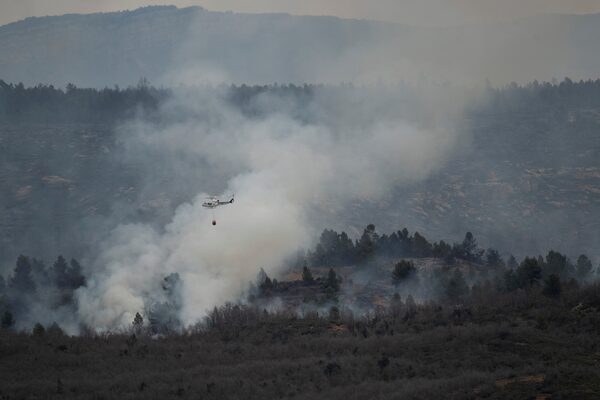 A helicopter drops water on a wildfire in San Agustin, Spain, on March 24.LORENA SOPENA/Reuters