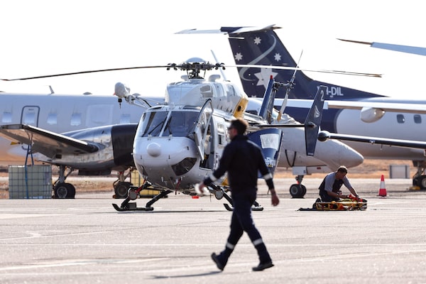 A Care Flight helicopter is seen on the tarmac of the Darwin International Airport in Darwin on August 27, 2023.DAVID GRAY/AFP/Getty Images