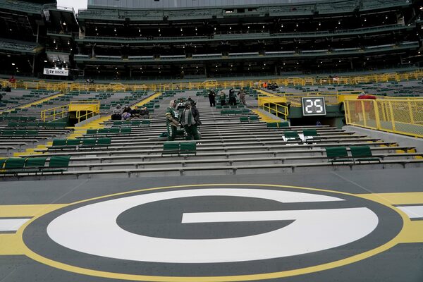 Fans take their socially distanced seats before an NFL divisional playoff football game between the Los Angeles Rams and Green Bay Packers, Jan. 16, 2021, in Green Bay, Wis.Morry Gash/The Associated Press