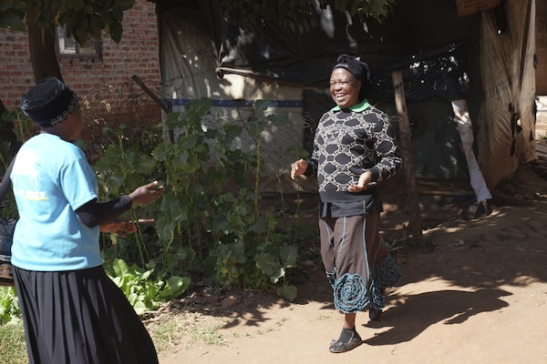 Siridzayi Dzukwa, a grandmother, left, meets up with Tambudzai Tembo outside her house in Hatfcliffe on the outskirts of the capital Harare, Zimbabwe, on May 15.Tsvangirayi Mukwazhi/The Associated Press