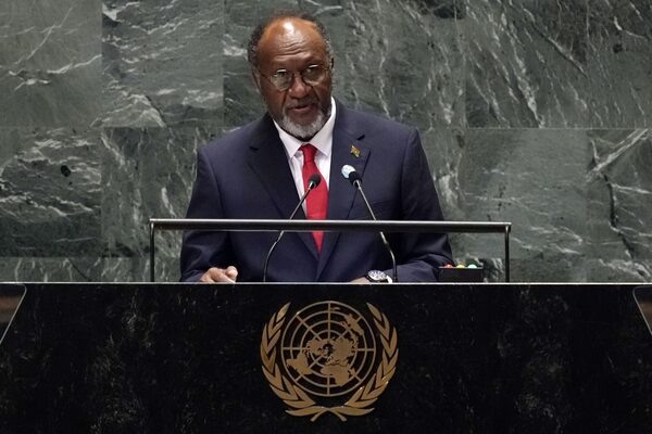 Vanuatu Prime Minister Charlot Salwai Tabimasmas addresses the 79th session of the United Nations General Assembly, on Sept. 27.Richard Drew/The Associated Press